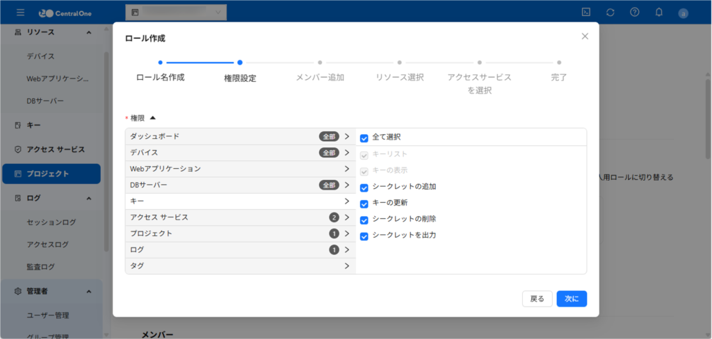 そのロールに対する権限を定義します。CentralOne内でこのロールが持つ操作と関連権限を明確に指定します。