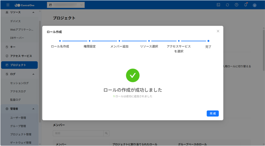 ロールを作成し、権限を設定し、メンバーを追加し、リソースとアクセスサービスを指定したら、そのロールはCentralOneに成功裏に追加されます。