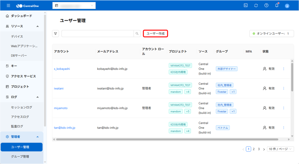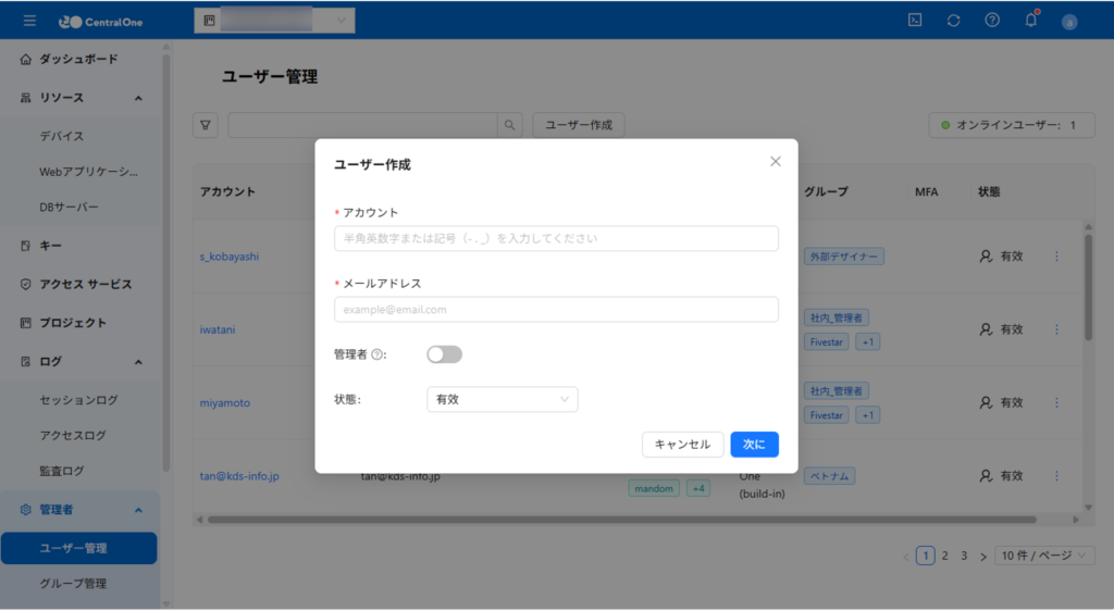 CentralOne で新しいユーザーを追加する方法は、以下の手順に従ってください