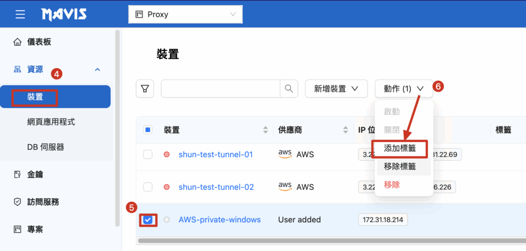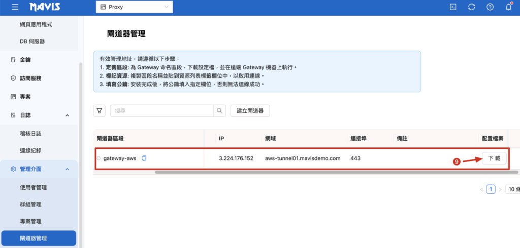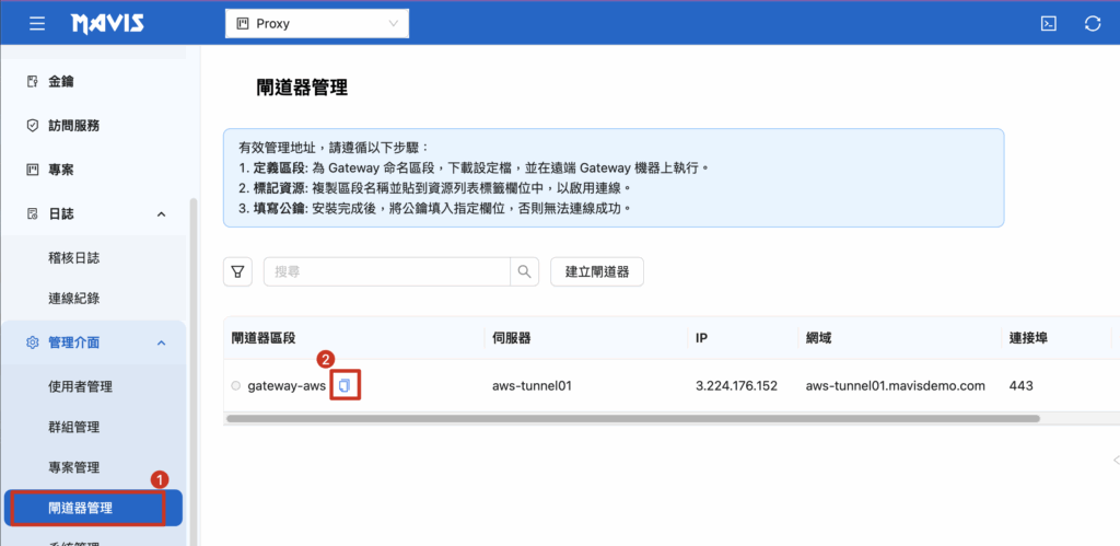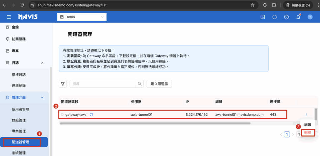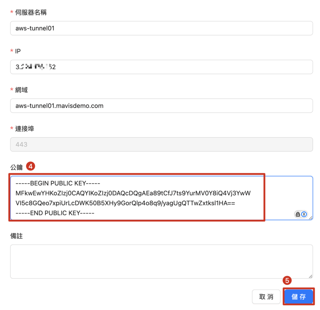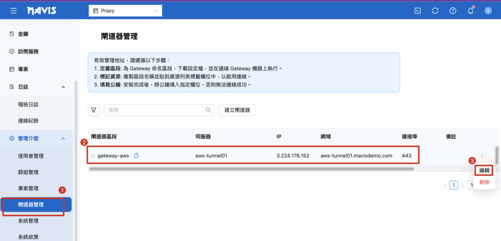 例: aws-tunnel01.mavisdemo.com