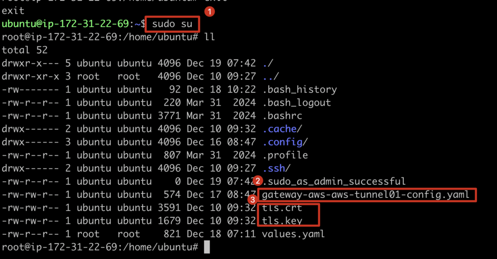 Gateway サーバーにログインし、sudo 権限を持つモードに切り替えて、サービスのインストールコマンドを実行します。