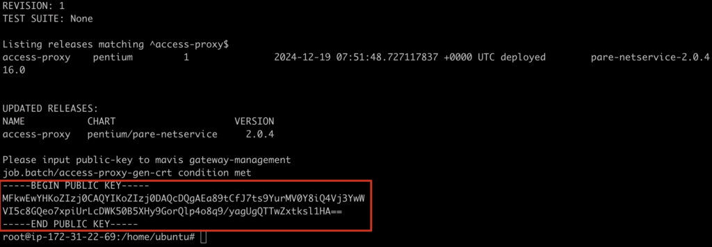 - インストールが成功すると、システムに Public Key が生成されます。