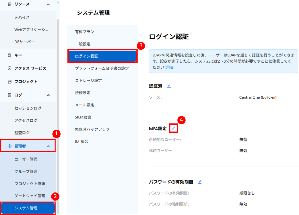 一、CentralOne ユーザーへの MFA 強制設定