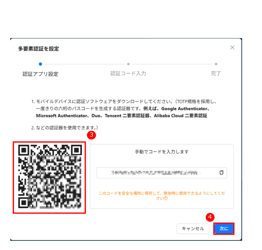 1. 認証アプリで QR コードを読み取り、6 桁の認証コードを取得します。