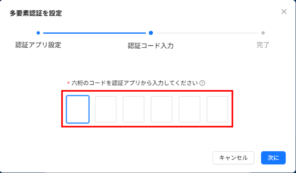 5. 6 桁の認証コードを入力します。