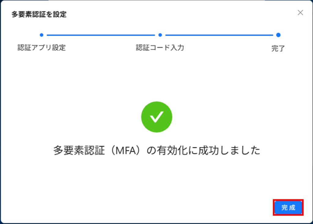 6. 「完了」をクリックすると、設定が完了し、プラットフォームにログインできます。