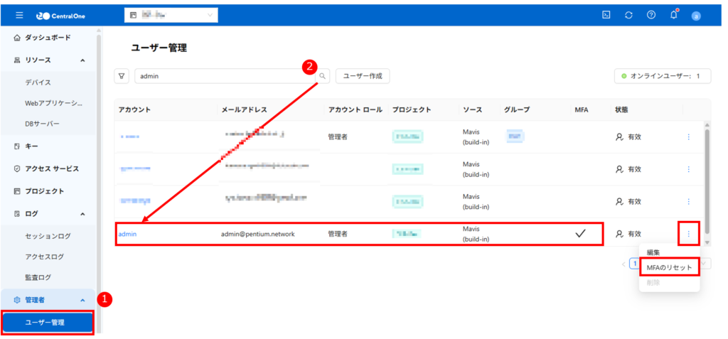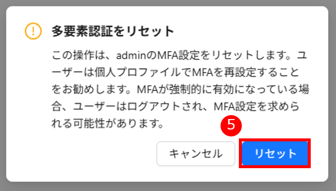 4. 「MFA リセット」をクリックします。