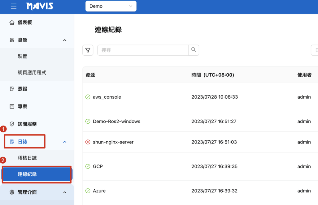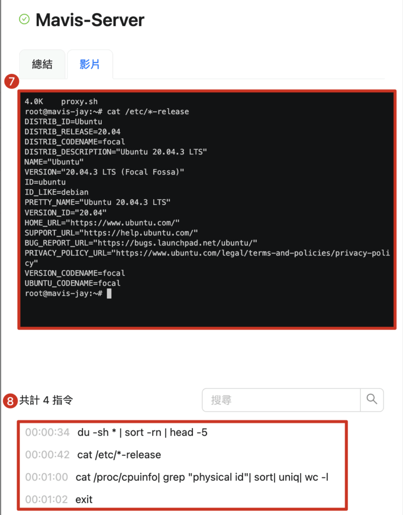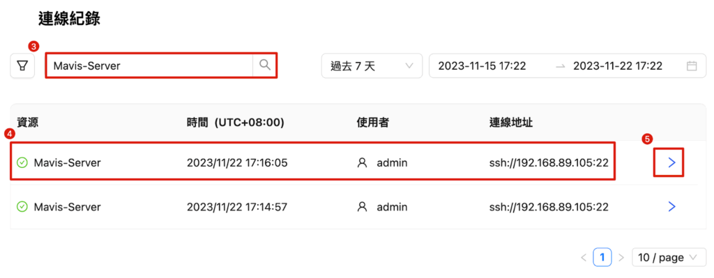 二、SSH 接続と操作の記録を確認できます。