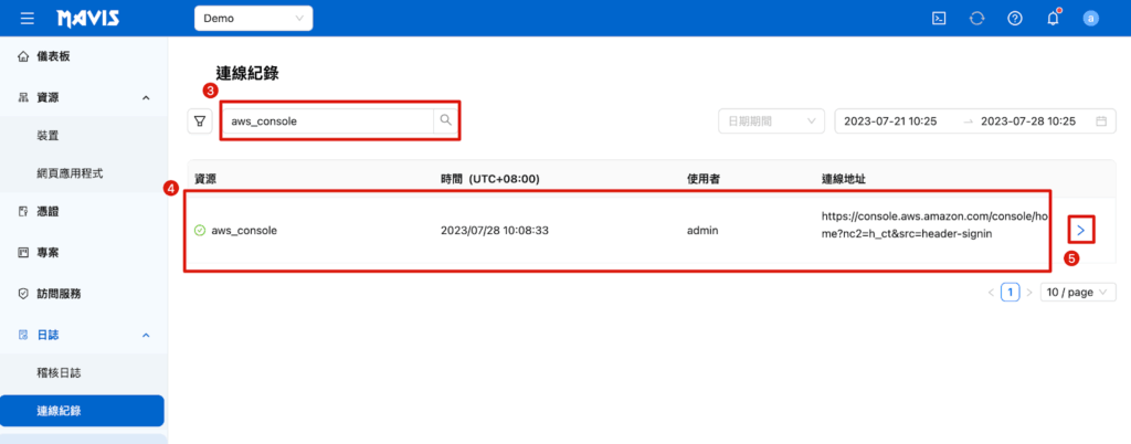 四、Web アプリケーション接続と操作記録の確認