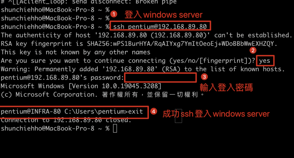 インストール後、OpenSSHクライアントがインストールされたWindowsまたはWindows ServerデバイスからOpenSSHサーバーに接続できます。PowerShellプロンプトで、以下のコマンドを実行します。