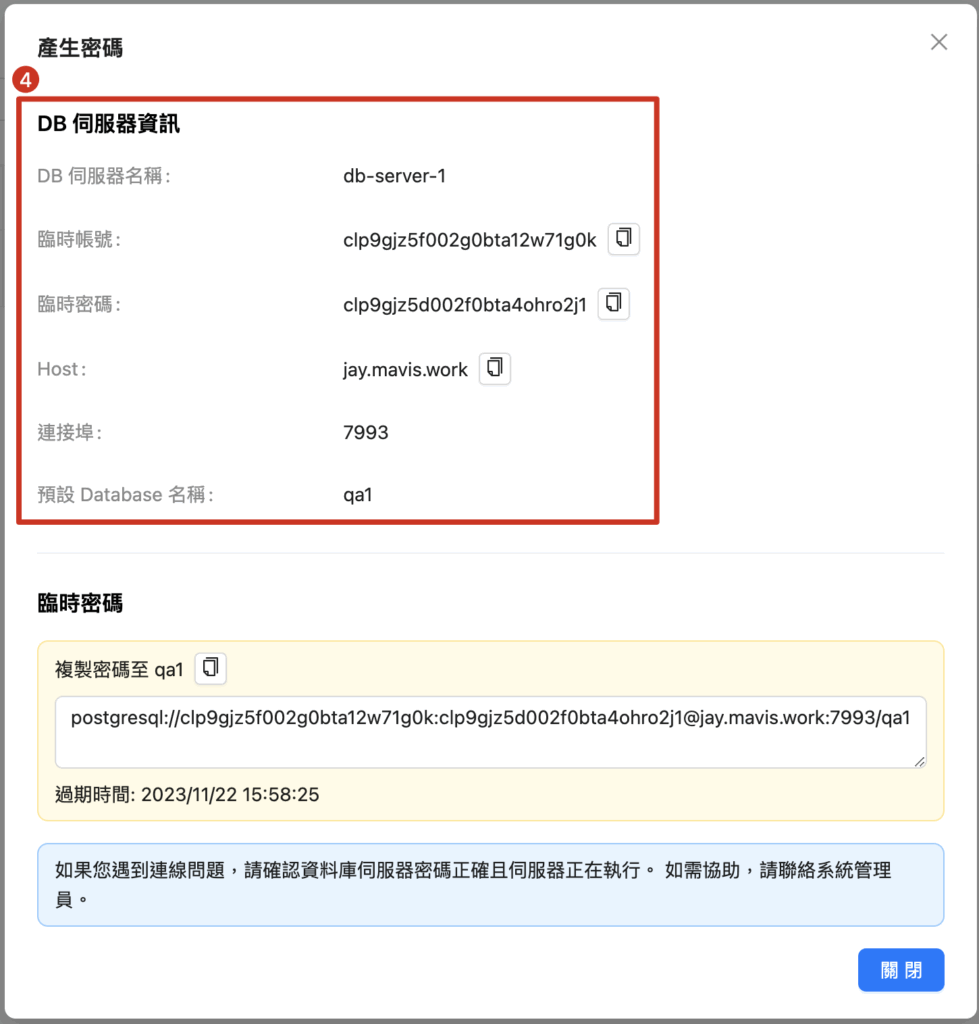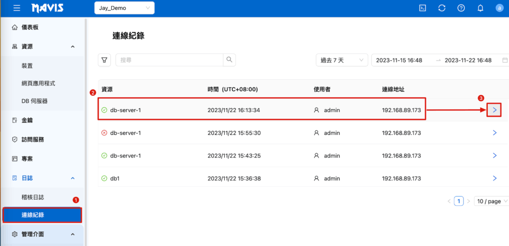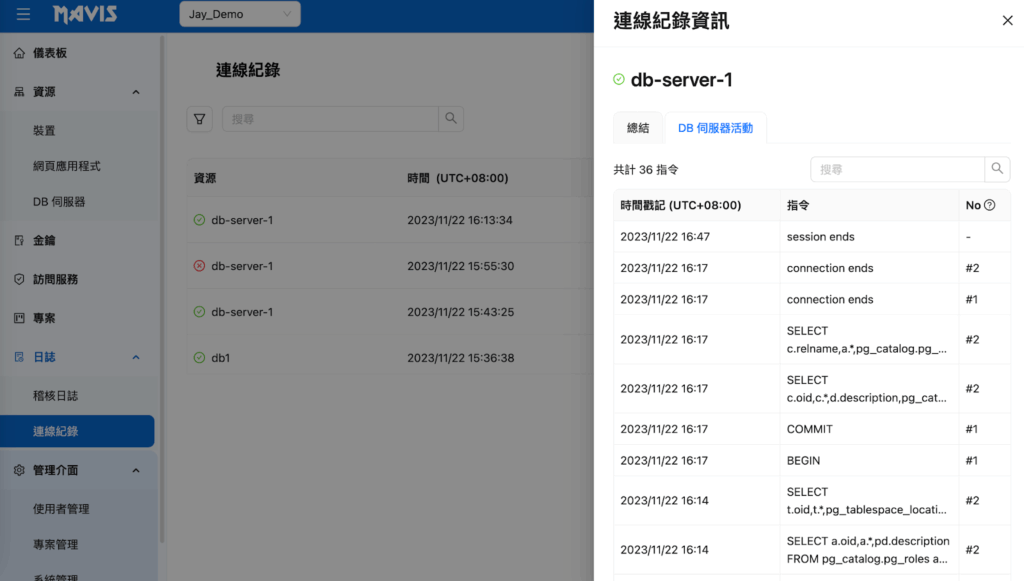 *DBサーバーの接続記録は、dbセッションが切断されてから30分後に生成されます。