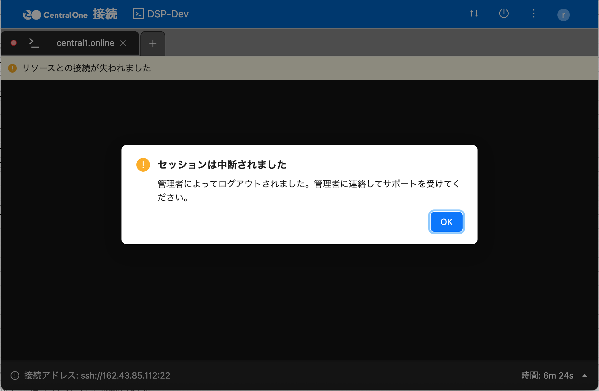 管理者が「セッションの切断」を実行した後、ユーザーの画面にはセッションが終了したメッセージが表示されます: