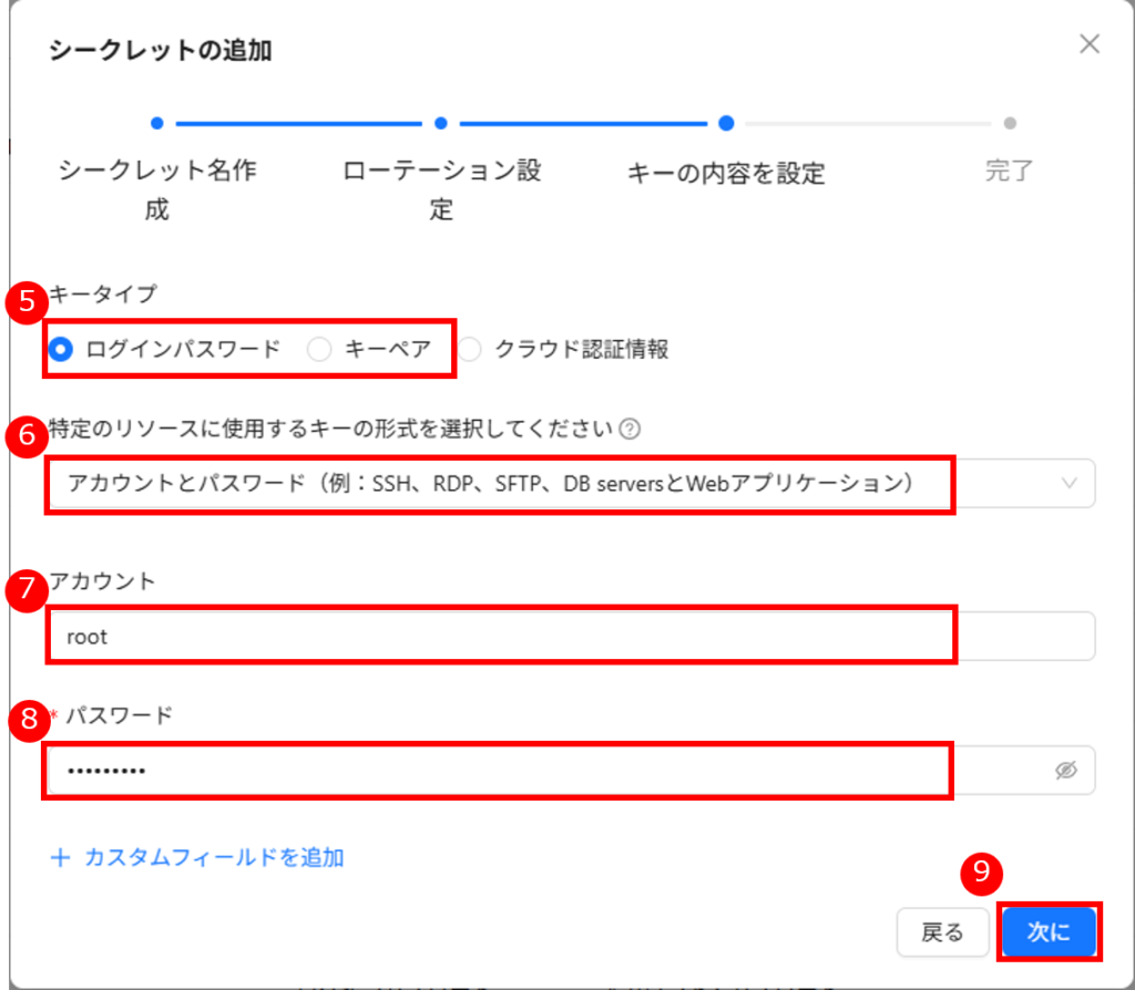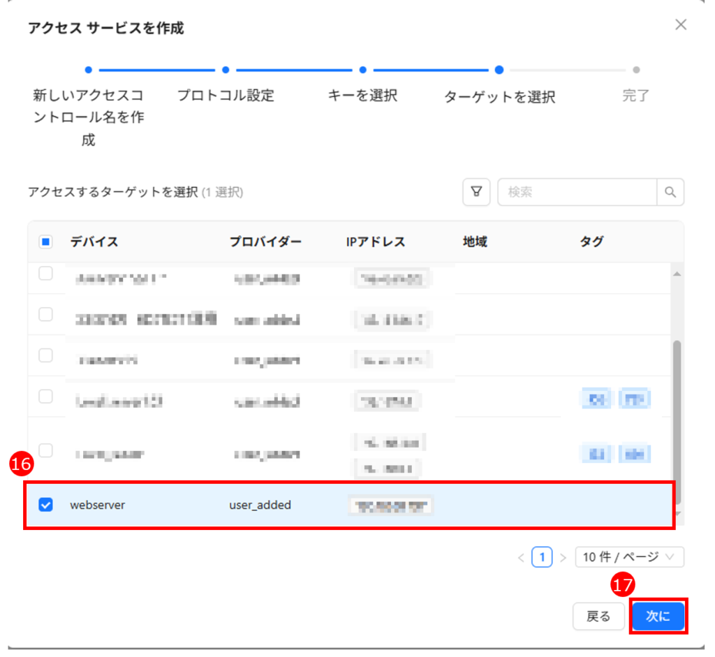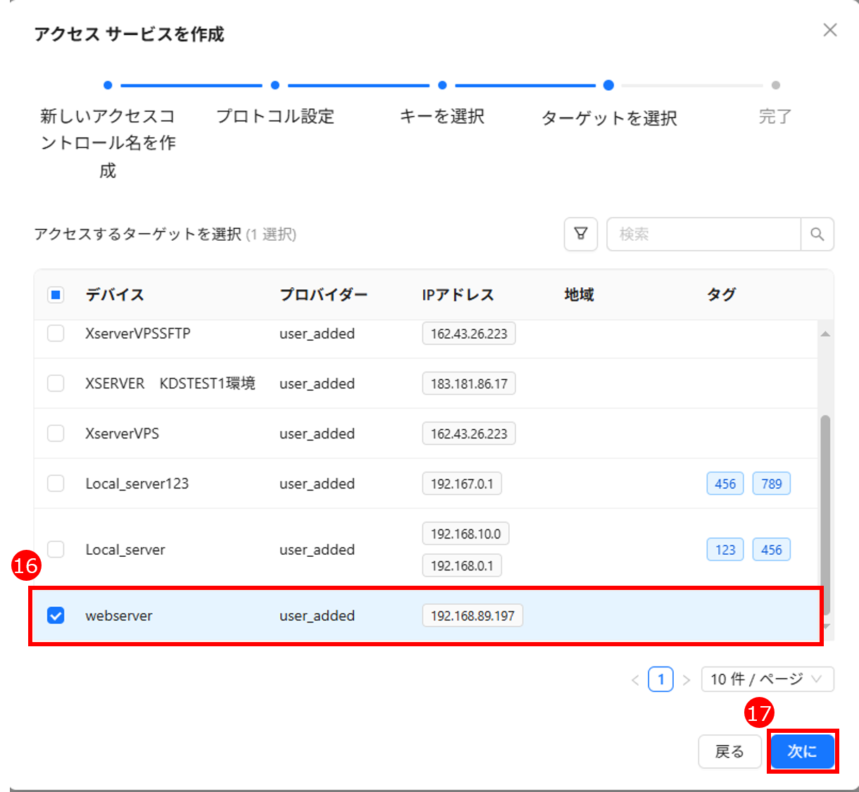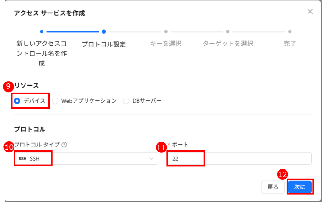 「アクセスサービス」は、サーバーのログイン「アカウント/パスワード」または「アカウント/SSH 鍵」および接続プロトコルなどの情報を記録します。