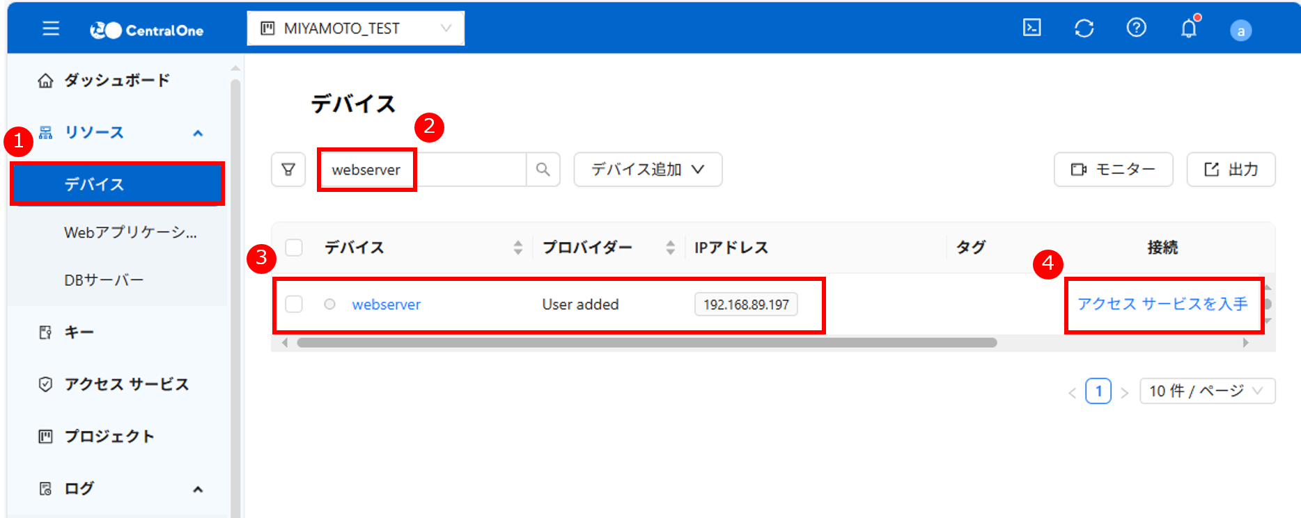 設定前にデバイスを CentralOneプラットフォームに追加してください。