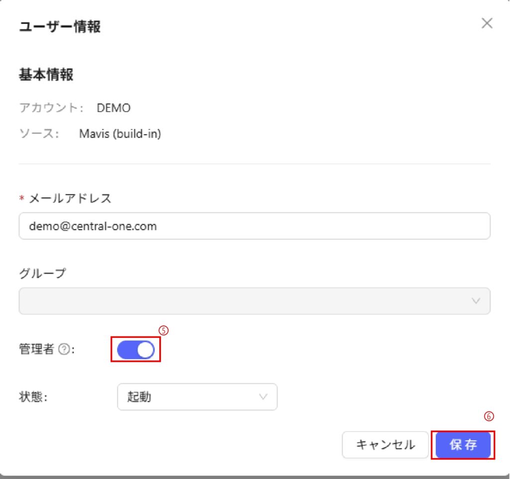 3. スーパーユーザー権限を付与するアカウントを選択します。