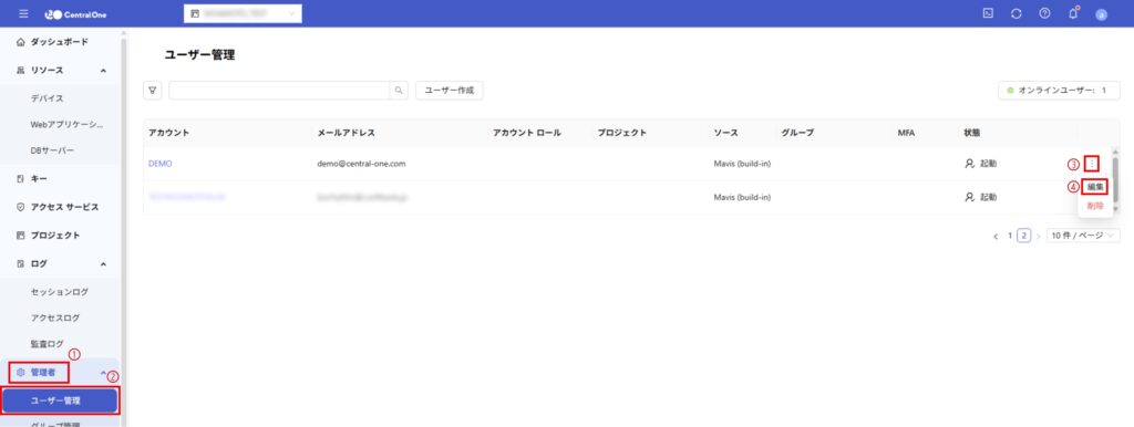 ユーザーのアカウントロールが管理者である必要があり、ユーザー管理者権限の設定が行えます。