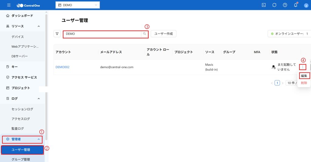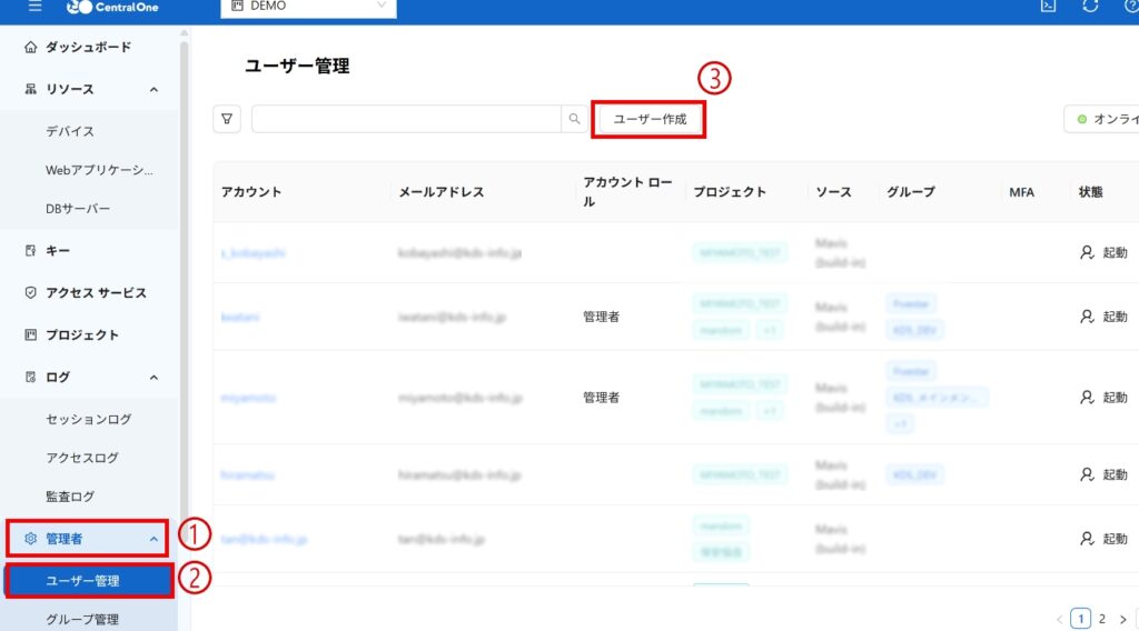 ユーザーのアカウント役割が管理者である必要があります。管理インターフェースからユーザー管理を行います。