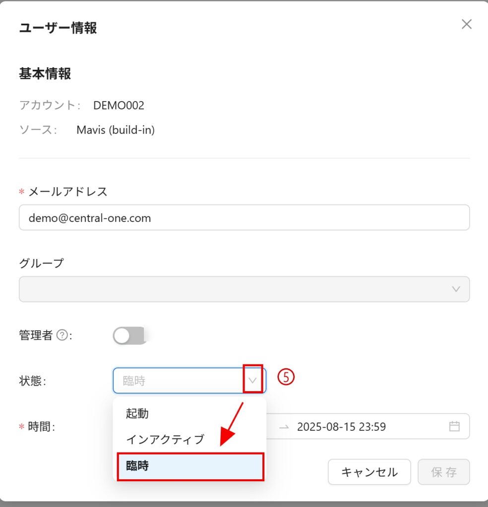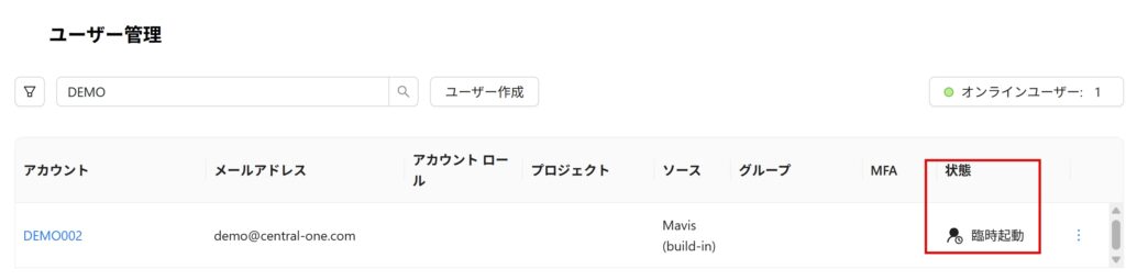 一時アカウントの設定後、ユーザーアカウントの状態は次のように分けられます: