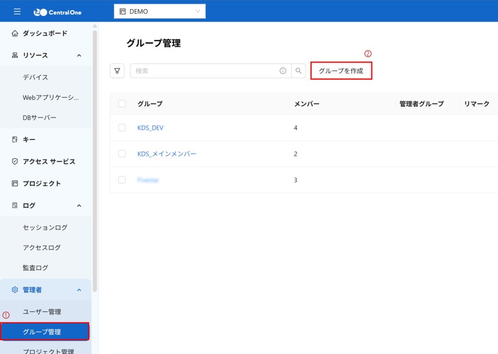 2. 「グループ作成」をクリック