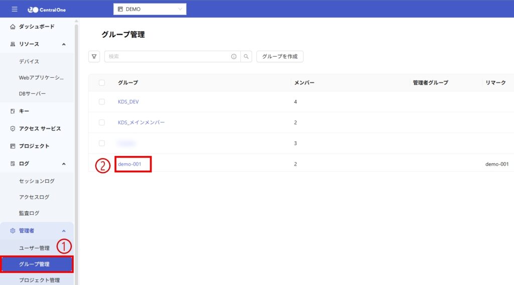 1. メインメニューの管理インターフェースから「グループ管理」に入る